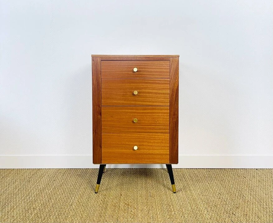 Vintage chest of drawers dating from the sixties consisting of four drawers.