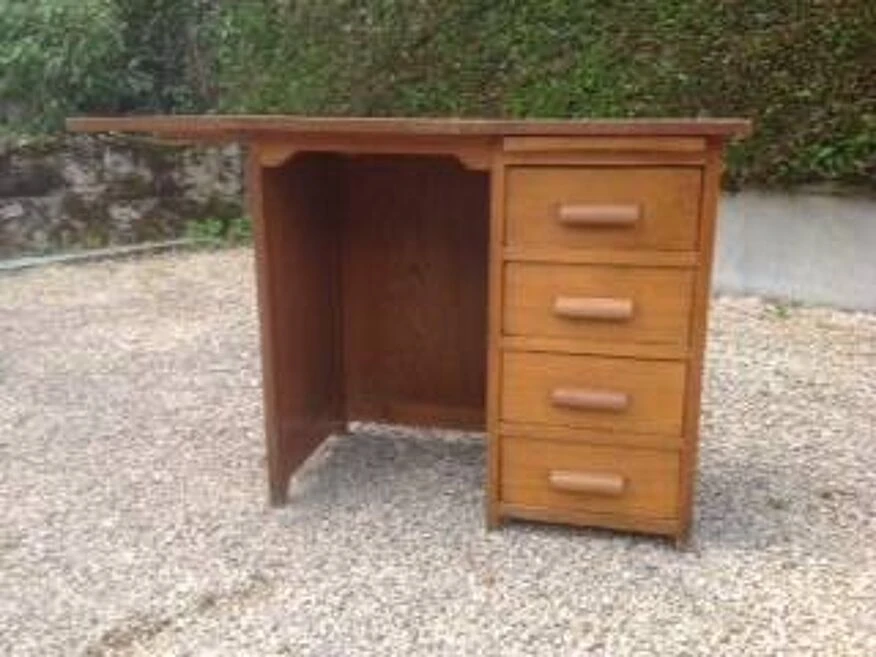 Vintage desk from the 1950s in very good condition with 4 drawers and a shelf h.72 d. 55 cm chair location h.67 cm w.40 cm length 84 cm with extension 112 cm delivery paris €20.