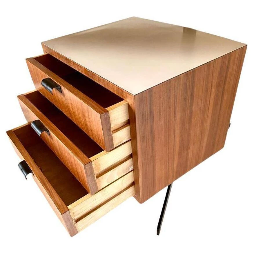 Steel black structure with wood top venereed in white /beige laminate. Two side adjustable drawers venereed in mahogany.