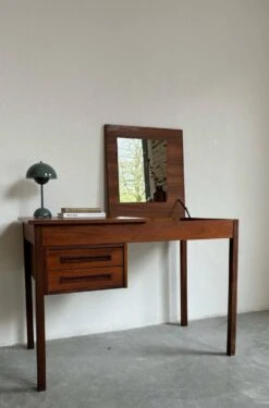Base in squared wicker and curved bamboo, half-moon shaped top and drawer in varnished wood.