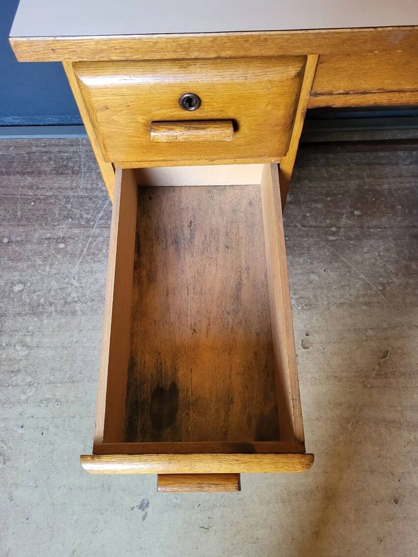 Vintage schoolmaster’s desk from the 1950s. Possibility of delivery by me.