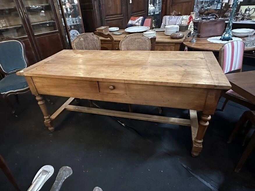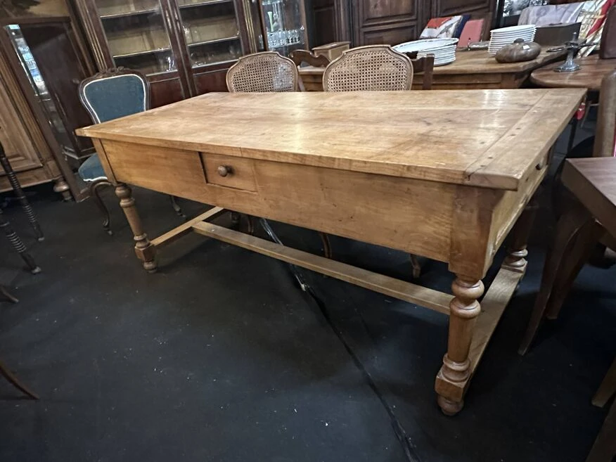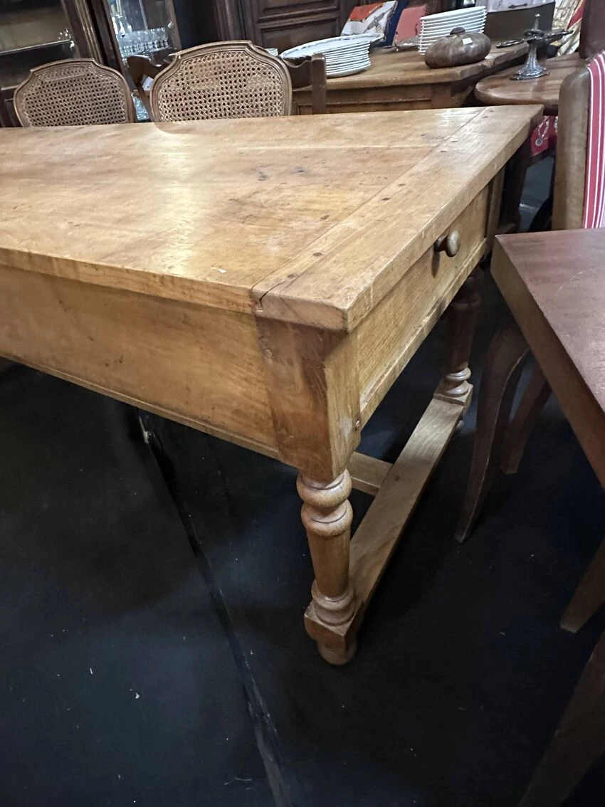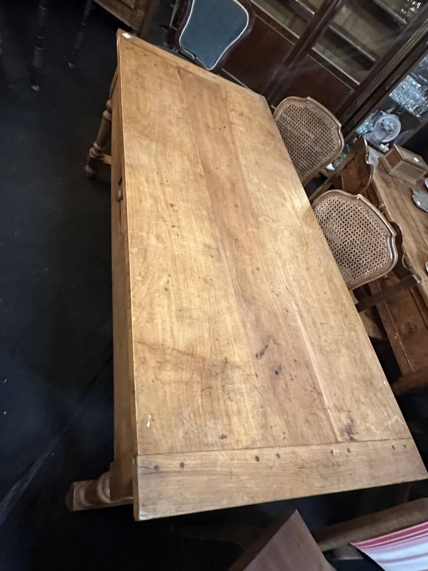 Walnut farm table with 4 drawers.