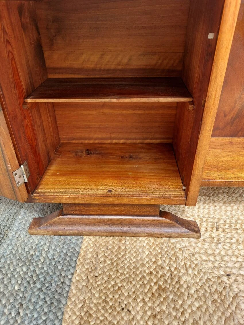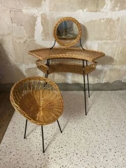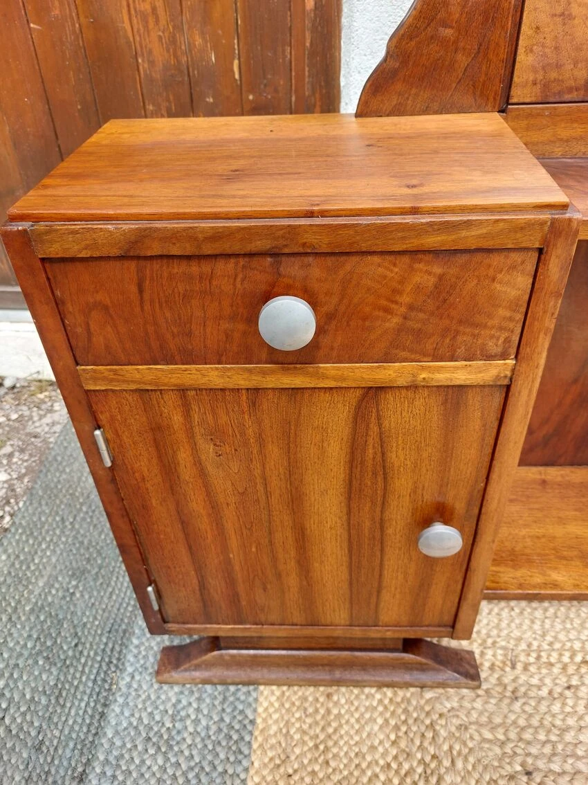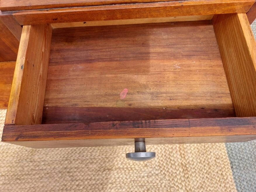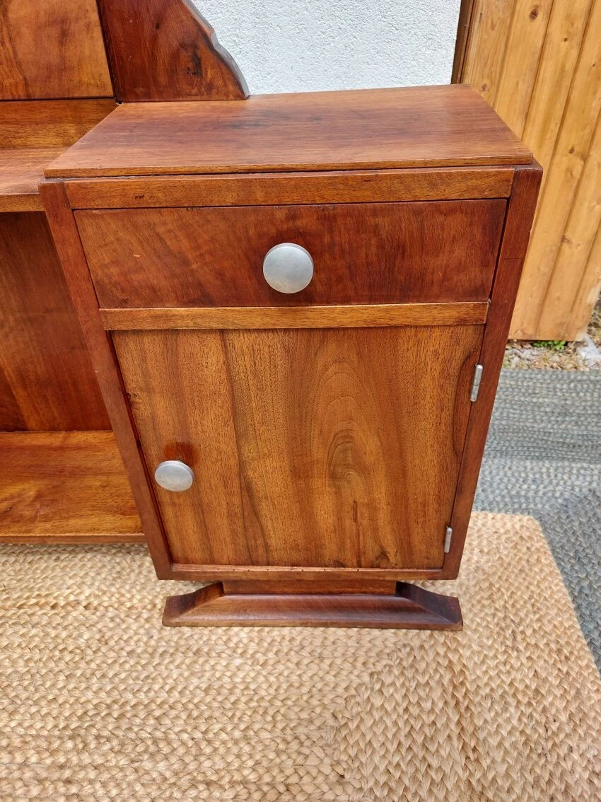 This art deco dressing table will find its place in a bedroom, a bathroom, any relaxation room where you can take time for yourself… pretty wooden furniture that will bring charm to your room. Original handles. For details, see the numerous photos which are an integral part of the description. The mirror has signs of use (see photos), it is removable. The entire piece of furniture was cleaned then nourished with linseed oil. Height of the furniture without the mirror: 68cm.