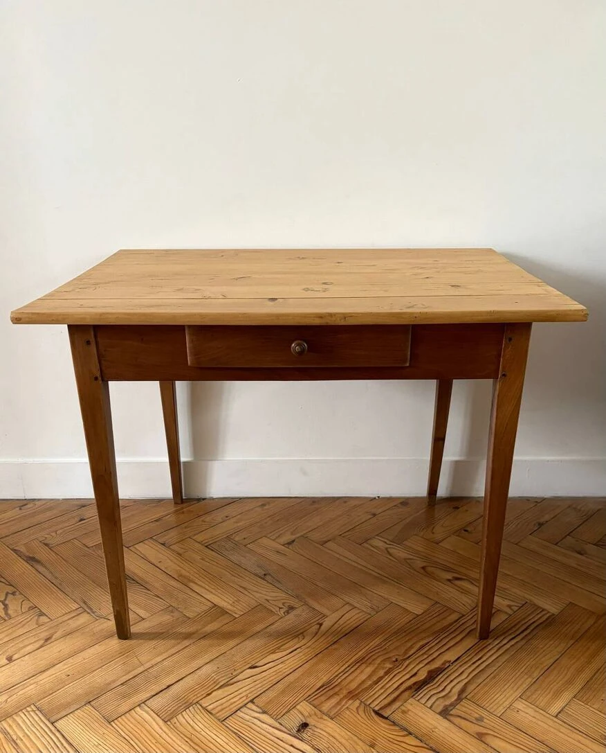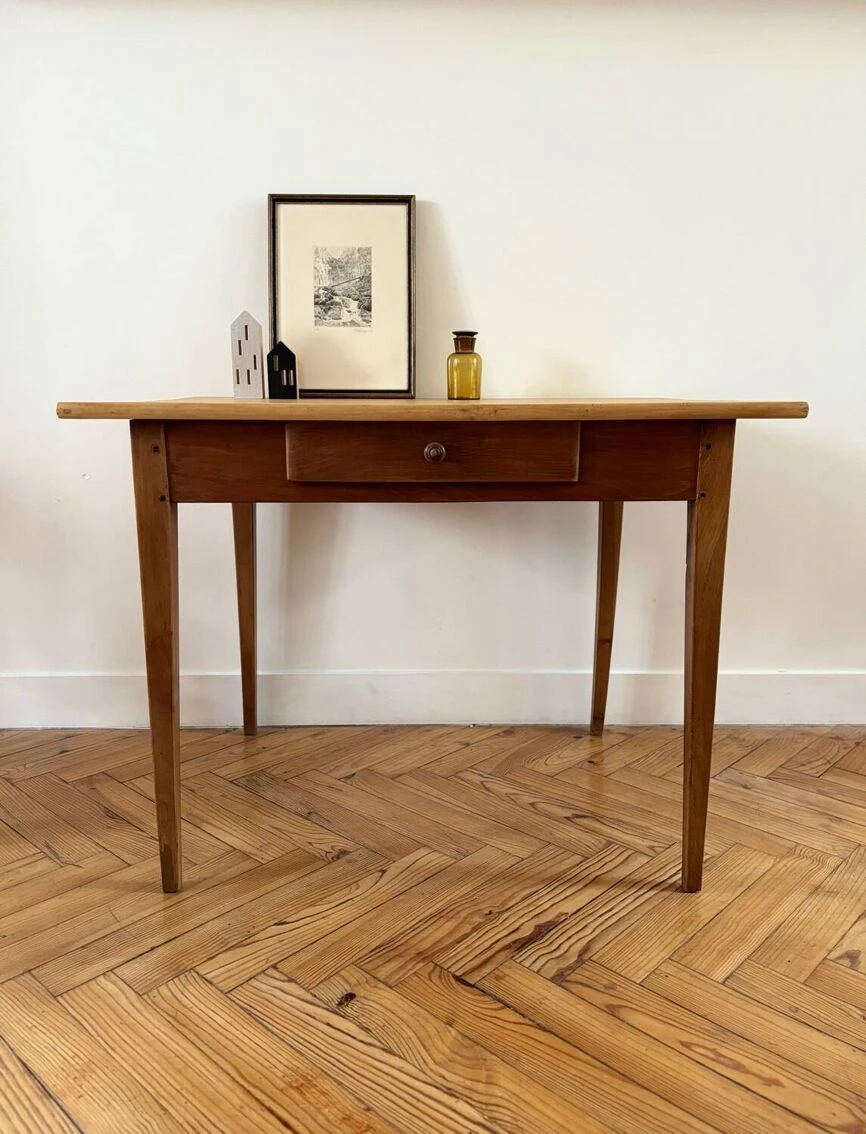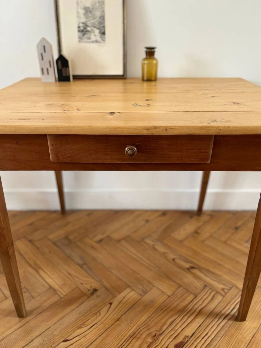 It has been sanded, treated, the base is waxed and the top is protected by a matte varnish.