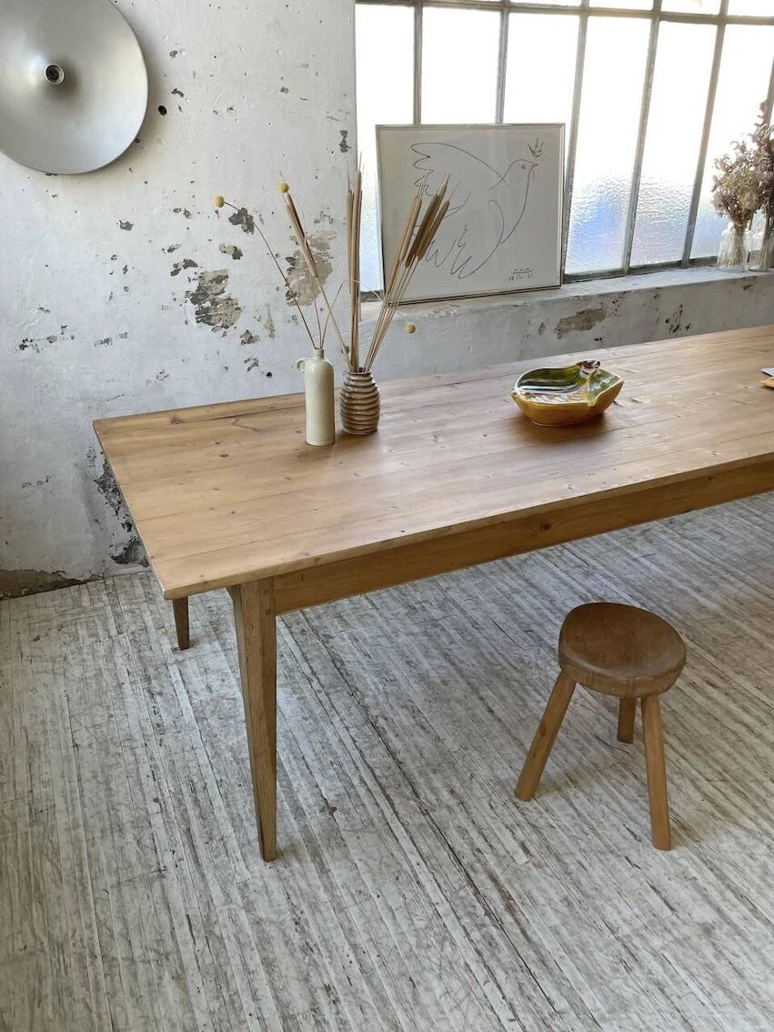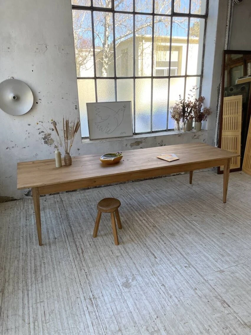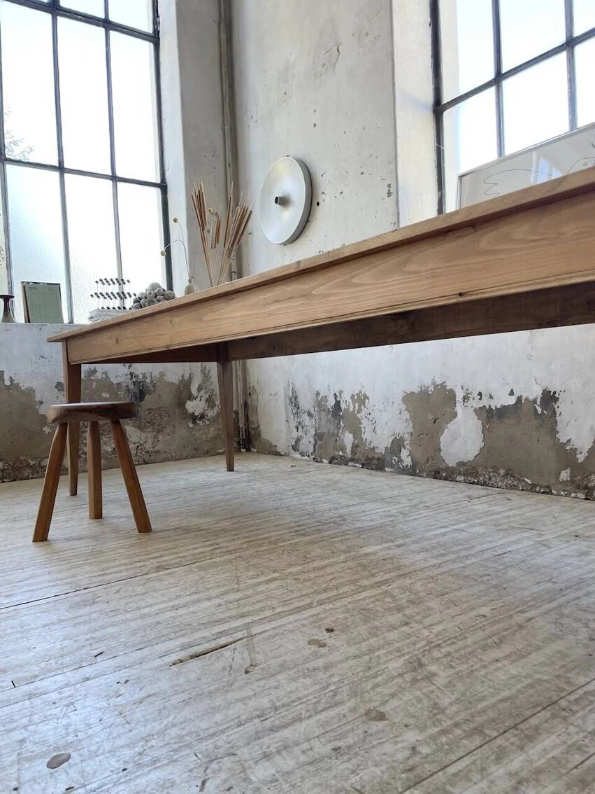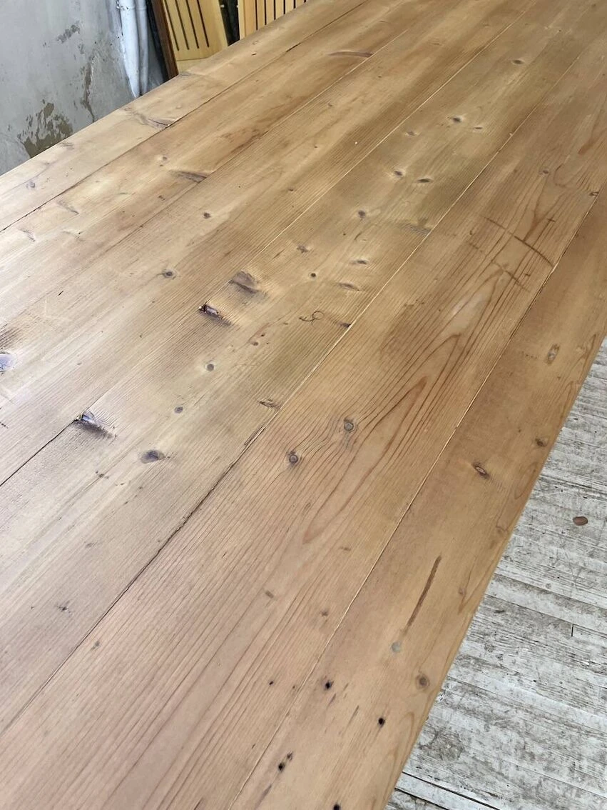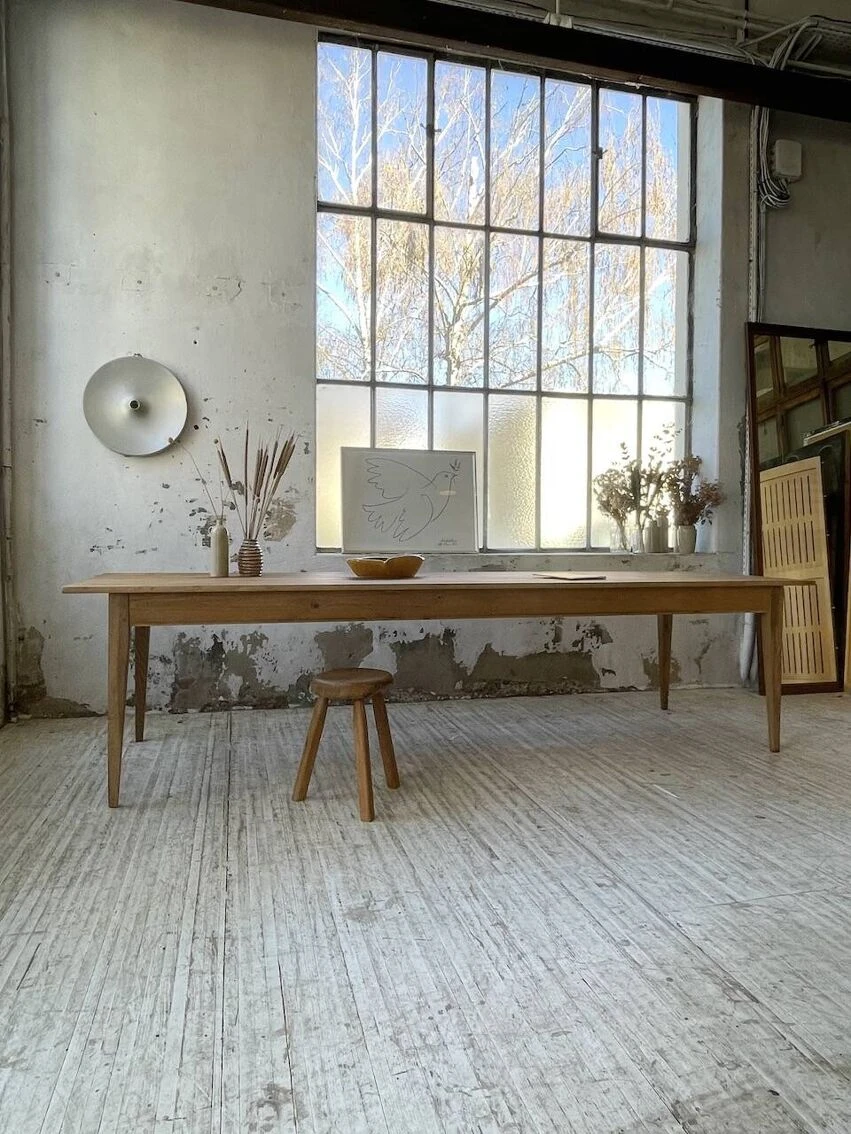 Old farm table in xxl format of 3m, with its pine top and oak legs.