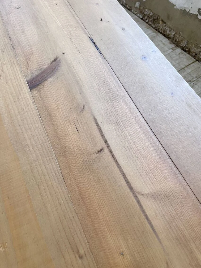 The table has been completely restored, sanded, treated, then protected with a transparent matte varnish.